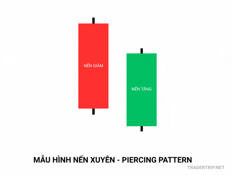 Piercing Pattern (Nến Xuyên) bắt đầu bằng sự sợ hãi khi giá mở cửa tạo Gap giảm, dường như phe bán vẫn chiếm ưu thế. Tuy nhiên, phe mua đã bất ngờ xuất hiện và đẩy giá lên, xuyên thủng hơn một nửa thân nến giảm trước đó.