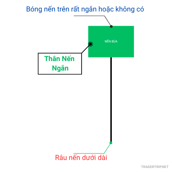 - Bóng nến dưới: Rất ngắn hoặc không có.