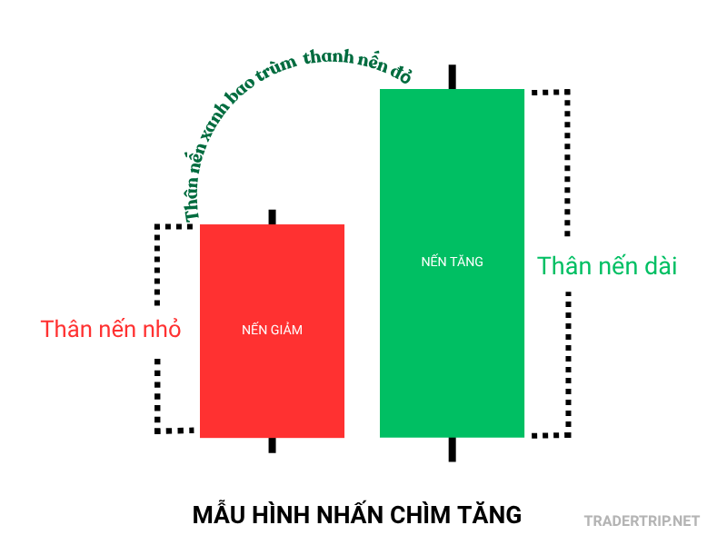 3. Bullish Engulfing (Nến Nhấn chìm Tăng) – Thay Đổi Động Lực Đột Ngột