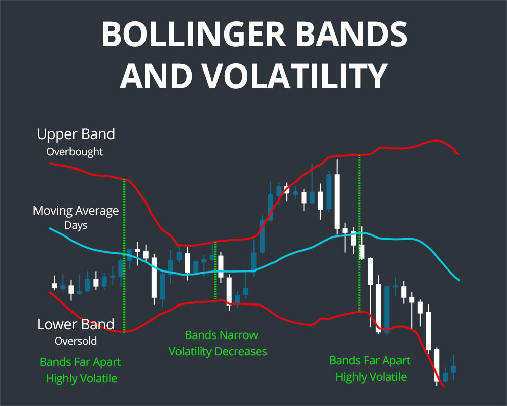 Bollinger Bands đo lường sự biến động của thị trường. Giá thường dao động trong hai dải biên (Upper/Lower Band) và có xu hướng quay về đường giữa (MA20).